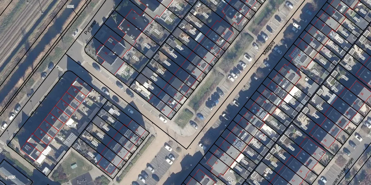 Gebruik de zoekbalk of klik op een perceel voor informatie over de adressen binnen dit perceel.