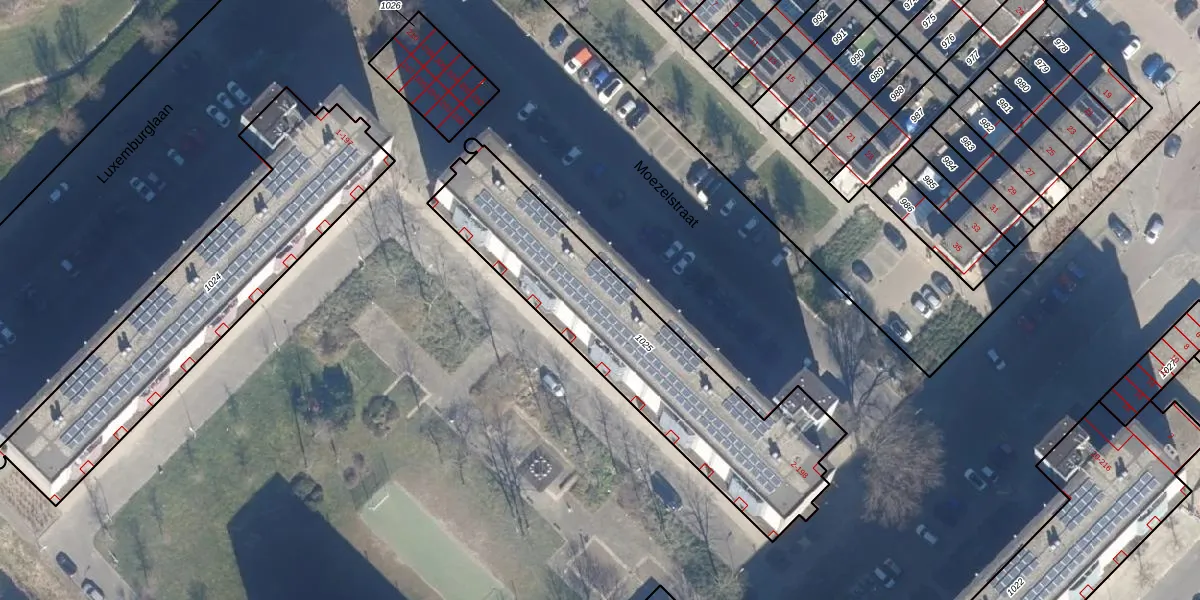Het perceel waarop Moezelstraat 106 staat heeft een oppervlakte van 1199 m². Dit is een zeer groot perceel. De perceeloppervlakte wordt geregistreerd door het Kadaster. Gedetailleerde informatie over de maten van dit perceel kunt u vinden in het rapport Kadastrale kaart met maatvoering van Moezelstraat 106.
