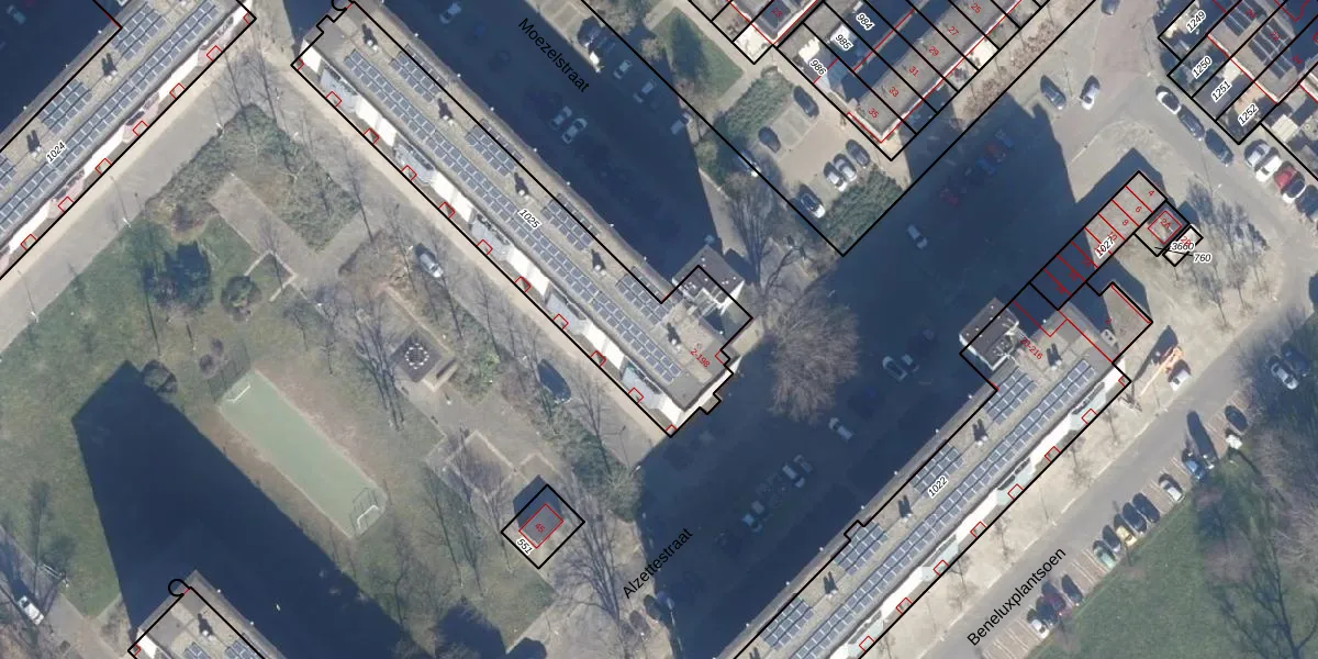 Het perceel waarop Moezelstraat 48 staat heeft een oppervlakte van 1199 m². Dit is een zeer groot perceel. De perceeloppervlakte wordt geregistreerd door het Kadaster. Gedetailleerde informatie over de maten van dit perceel kunt u vinden in het rapport Kadastrale kaart met maatvoering van Moezelstraat 48.