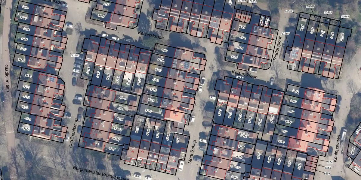 Het perceel waarop Monnikskap 8 staat heeft een oppervlakte van 165 m². Dit is een middelgroot perceel. De perceeloppervlakte wordt geregistreerd door het Kadaster. Gedetailleerde informatie over de maten van dit perceel kunt u vinden in het rapport Kadastrale kaart met maatvoering van Monnikskap 8.