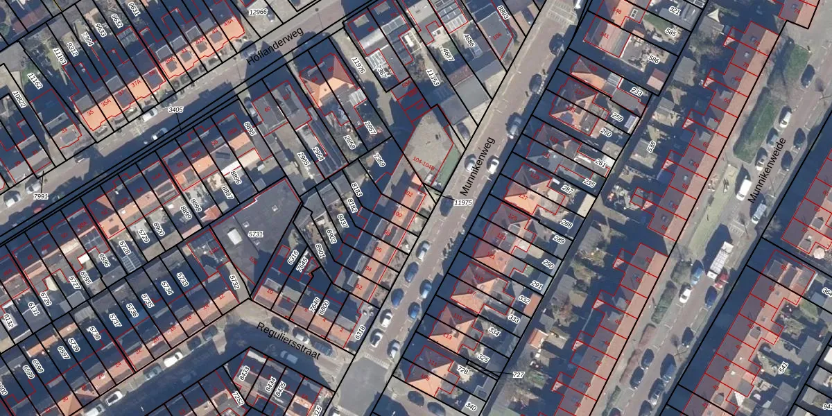 Gebruik de zoekbalk of klik op een perceel voor informatie over de adressen binnen dit perceel.