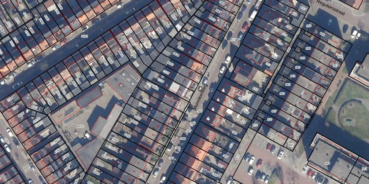 Gebruik de zoekbalk of klik op een perceel voor informatie over de adressen binnen dit perceel.