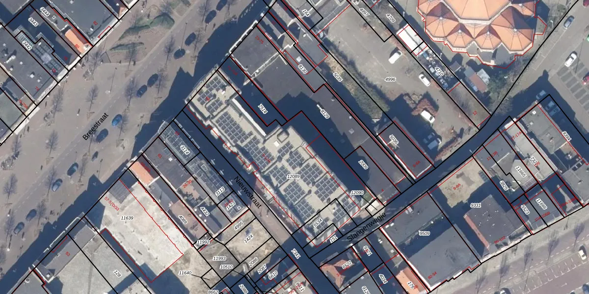 Het perceel waarop Nieuwstraat 11-C staat heeft een oppervlakte van 1556 m². Dit is een zeer groot perceel. De perceeloppervlakte wordt geregistreerd door het Kadaster. Gedetailleerde informatie over de maten van dit perceel kunt u vinden in het rapport Kadastrale kaart met maatvoering van Nieuwstraat 11-C.