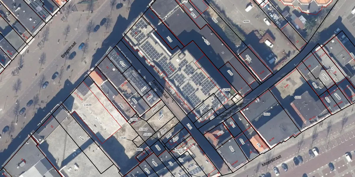 Het perceel waarop Nieuwstraat 5-C staat heeft een oppervlakte van 1556 m². Dit is een zeer groot perceel. De perceeloppervlakte wordt geregistreerd door het Kadaster. Gedetailleerde informatie over de maten van dit perceel kunt u vinden in het rapport Kadastrale kaart met maatvoering van Nieuwstraat 5-C.
