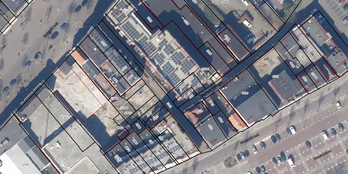 Het perceel waarop Nieuwstraat 5-F staat heeft een oppervlakte van 1556 m². Dit is een zeer groot perceel. De perceeloppervlakte wordt geregistreerd door het Kadaster. Gedetailleerde informatie over de maten van dit perceel kunt u vinden in het rapport Kadastrale kaart met maatvoering van Nieuwstraat 5-F.