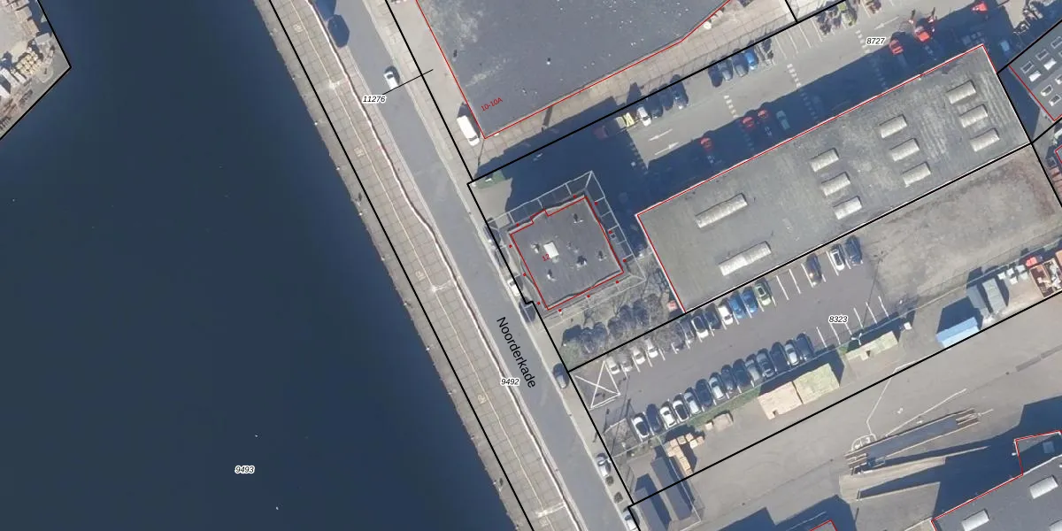 Het perceel waarop Noorderkade 12 staat heeft een oppervlakte van 6633 m². Dit is een zeer groot perceel. De perceeloppervlakte wordt geregistreerd door het Kadaster. Gedetailleerde informatie over de maten van dit perceel kunt u vinden in het rapport Kadastrale kaart met maatvoering van Noorderkade 12.