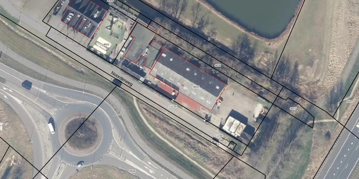 Noorderweg 13-A is gelegen op kadastraal perceel BVW00A9605. Deze kadastrale aanduiding is uniek en wordt gebruikt door het Kadaster om eigendomsrechten en andere zakelijke rechten vast te leggen. Het perceel maakt onderdeel uit van de kadastrale gemeente Beverwijk.