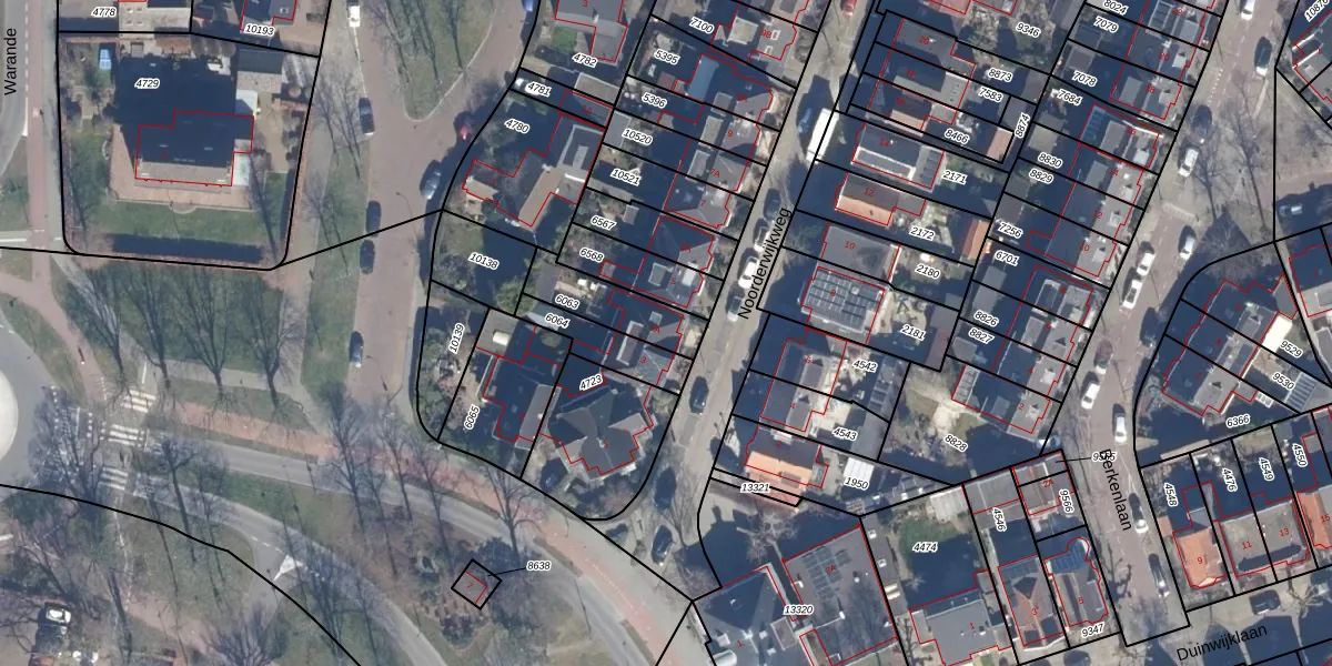Gebruik de zoekbalk of klik op een perceel voor informatie over de adressen binnen dit perceel.