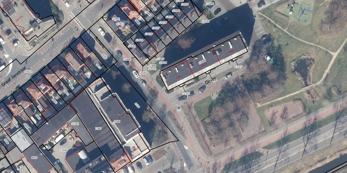 Het perceel waarop Oever 2 staat heeft een oppervlakte van 582 m². Dit is een groot perceel. De perceeloppervlakte wordt geregistreerd door het Kadaster. Gedetailleerde informatie over de maten van dit perceel kunt u vinden in het rapport Kadastrale kaart met maatvoering van Oever 2.