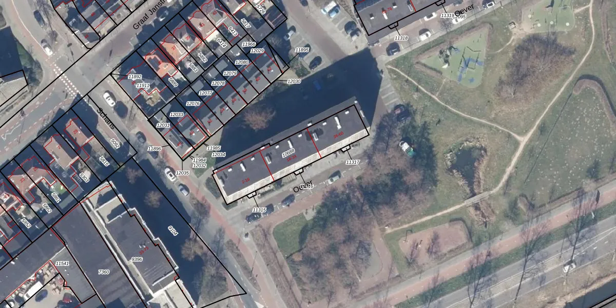 Het perceel waarop Oever 32 staat heeft een oppervlakte van 582 m². Dit is een groot perceel. De perceeloppervlakte wordt geregistreerd door het Kadaster. Gedetailleerde informatie over de maten van dit perceel kunt u vinden in het rapport Kadastrale kaart met maatvoering van Oever 32.