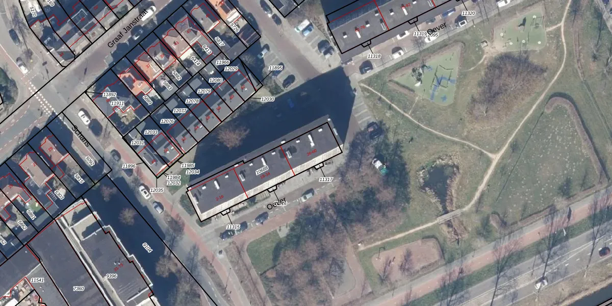 Het perceel waarop Oever 54 staat heeft een oppervlakte van 582 m². Dit is een groot perceel. De perceeloppervlakte wordt geregistreerd door het Kadaster. Gedetailleerde informatie over de maten van dit perceel kunt u vinden in het rapport Kadastrale kaart met maatvoering van Oever 54.