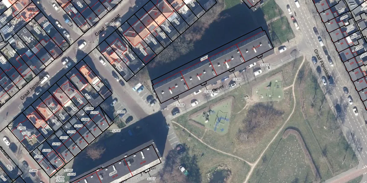 Het perceel waarop Oever 68 staat heeft een oppervlakte van 911 m². Dit is een groot perceel. De perceeloppervlakte wordt geregistreerd door het Kadaster. Gedetailleerde informatie over de maten van dit perceel kunt u vinden in het rapport Kadastrale kaart met maatvoering van Oever 68.
