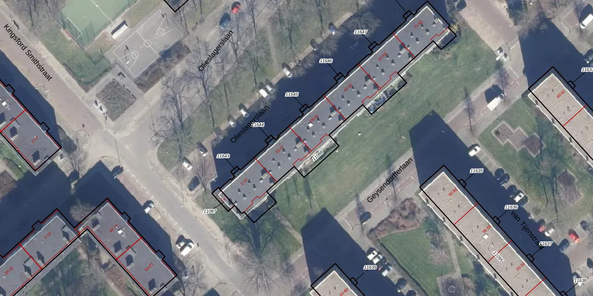 Het perceel waarop Olieslagerslaan 27 staat heeft een oppervlakte van 1305 m². Dit is een zeer groot perceel. De perceeloppervlakte wordt geregistreerd door het Kadaster. Gedetailleerde informatie over de maten van dit perceel kunt u vinden in het rapport Kadastrale kaart met maatvoering van Olieslagerslaan 27.