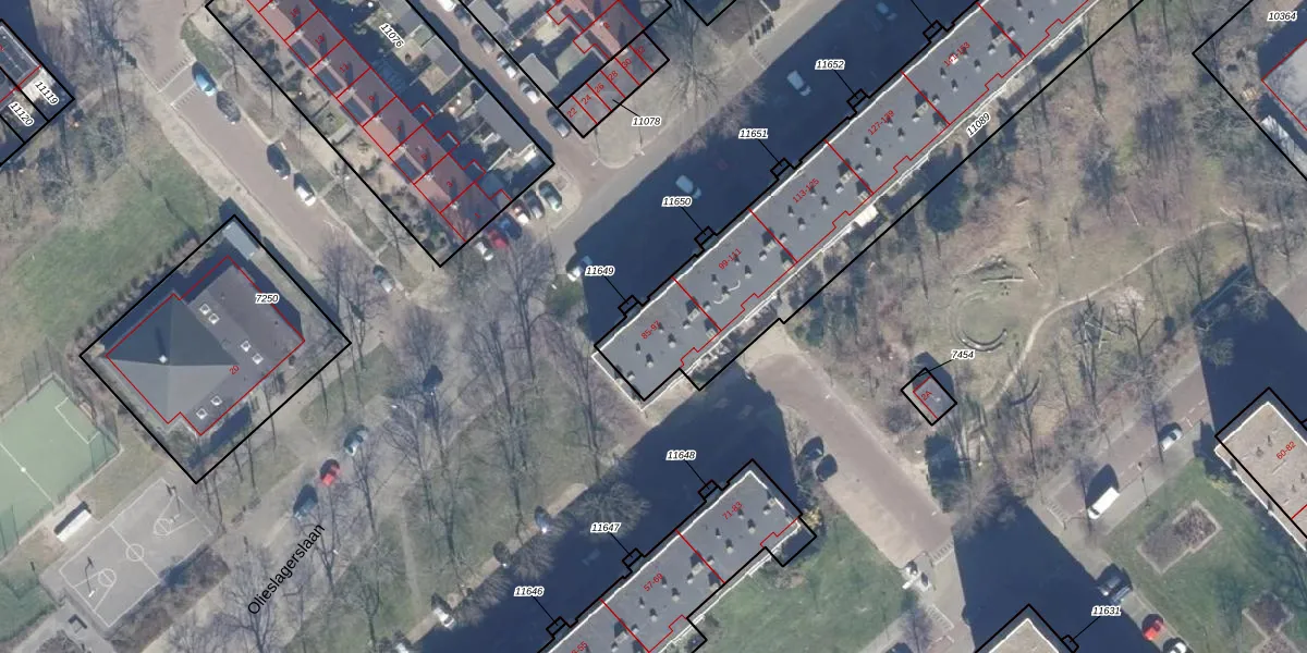Het perceel waarop Olieslagerslaan 93 staat heeft een oppervlakte van 2249 m². Dit is een zeer groot perceel. De perceeloppervlakte wordt geregistreerd door het Kadaster. Gedetailleerde informatie over de maten van dit perceel kunt u vinden in het rapport Kadastrale kaart met maatvoering van Olieslagerslaan 93.