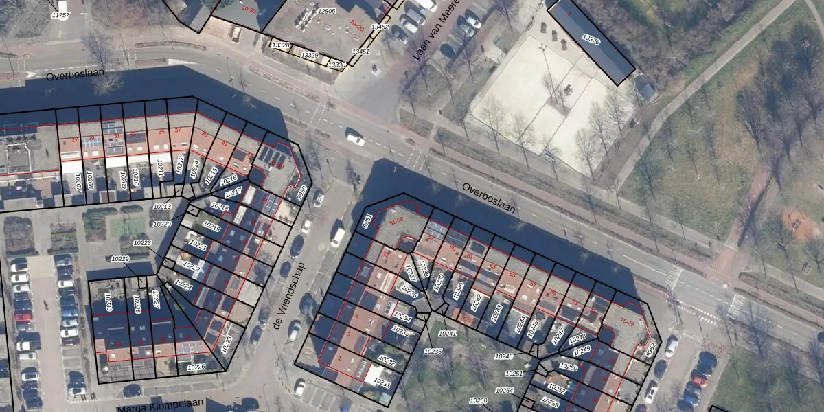 Het perceel waarop Overboslaan 55 staat heeft een oppervlakte van 175 m². Dit is een middelgroot perceel. De perceeloppervlakte wordt geregistreerd door het Kadaster. Gedetailleerde informatie over de maten van dit perceel kunt u vinden in het rapport Kadastrale kaart met maatvoering van Overboslaan 55.