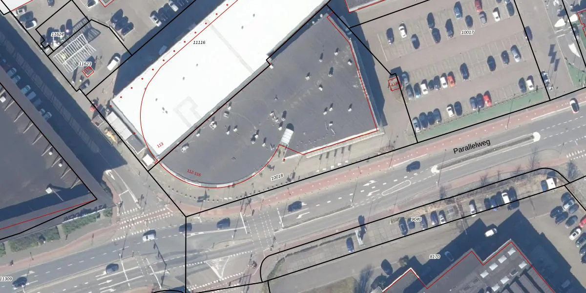 Het perceel waarop Parallelweg 114 staat heeft een oppervlakte van 3226 m². Dit is een zeer groot perceel. De perceeloppervlakte wordt geregistreerd door het Kadaster. Gedetailleerde informatie over de maten van dit perceel kunt u vinden in het rapport Kadastrale kaart met maatvoering van Parallelweg 114.