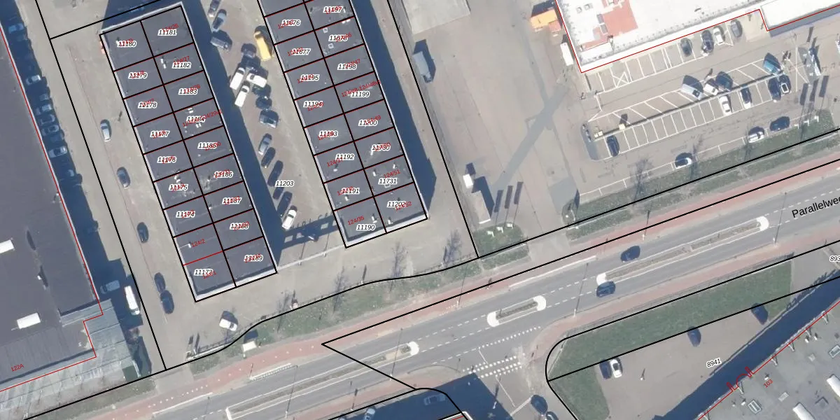 Het perceel waarop Parallelweg 124-52 staat heeft een oppervlakte van 95 m². Dit is een klein perceel. De perceeloppervlakte wordt geregistreerd door het Kadaster. Gedetailleerde informatie over de maten van dit perceel kunt u vinden in het rapport Kadastrale kaart met maatvoering van Parallelweg 124-52.
