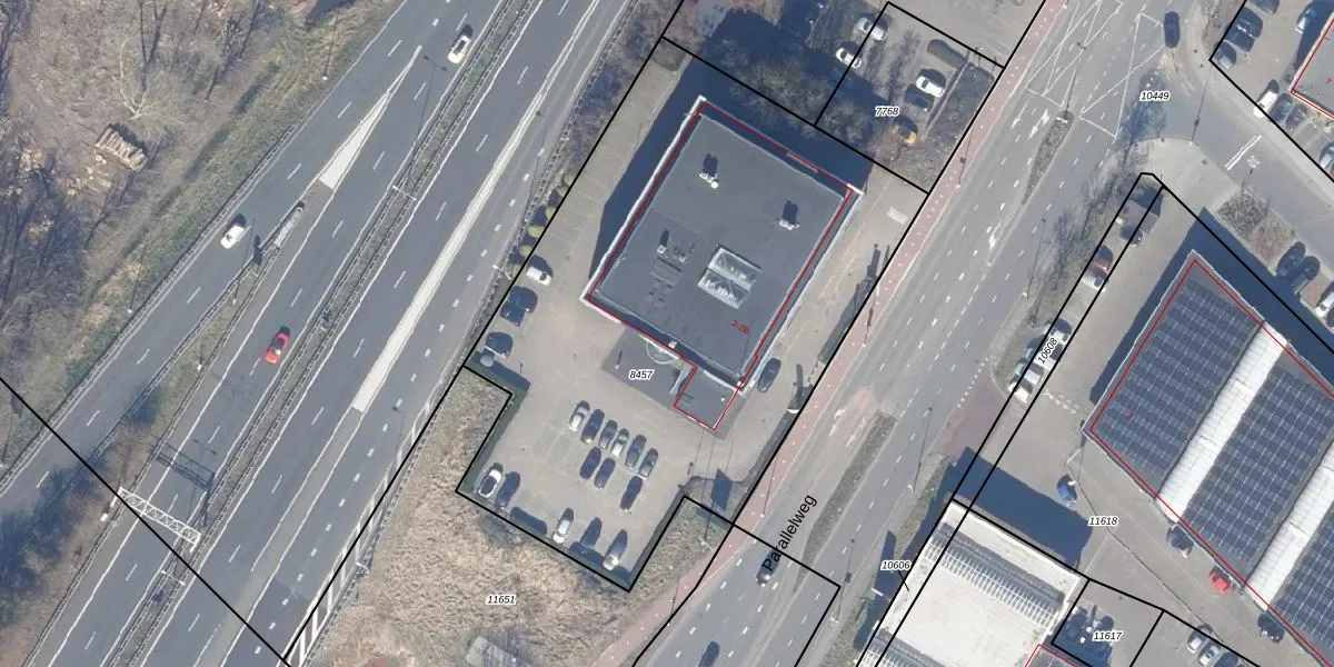 Het perceel waarop Parallelweg 2 staat heeft een oppervlakte van 3195 m². Dit is een zeer groot perceel. De perceeloppervlakte wordt geregistreerd door het Kadaster. Gedetailleerde informatie over de maten van dit perceel kunt u vinden in het rapport Kadastrale kaart met maatvoering van Parallelweg 2.