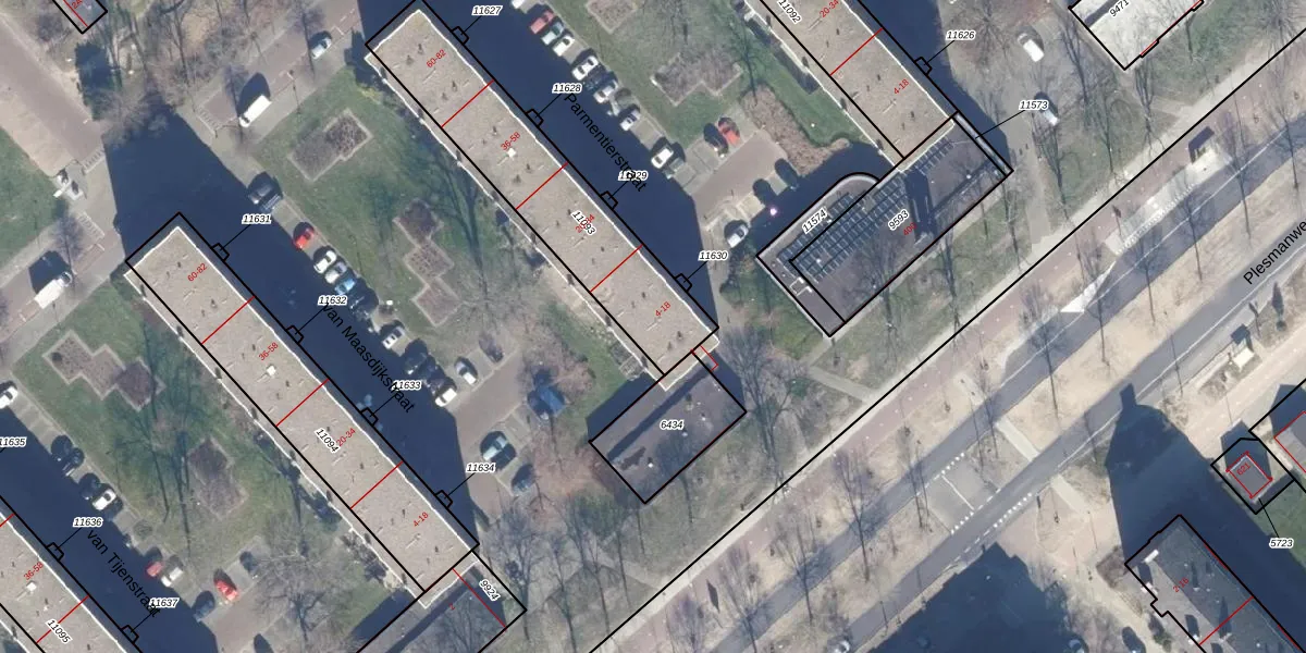 Het perceel waarop Parmentierstraat 18 staat heeft een oppervlakte van 758 m². Dit is een groot perceel. De perceeloppervlakte wordt geregistreerd door het Kadaster. Gedetailleerde informatie over de maten van dit perceel kunt u vinden in het rapport Kadastrale kaart met maatvoering van Parmentierstraat 18.