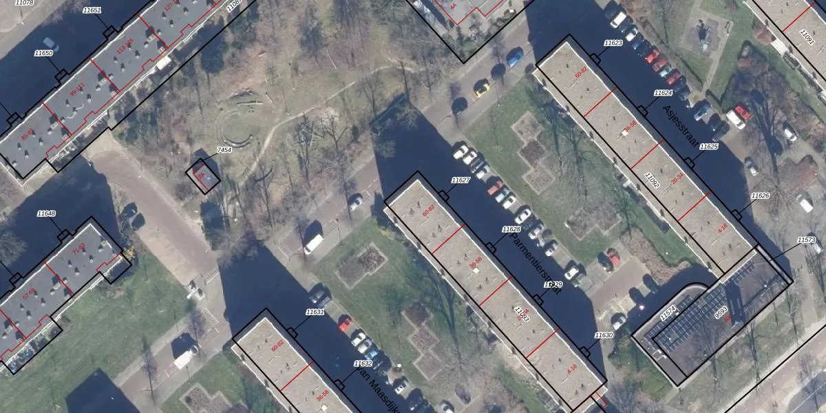 Het perceel waarop Parmentierstraat 76 staat heeft een oppervlakte van 758 m². Dit is een groot perceel. De perceeloppervlakte wordt geregistreerd door het Kadaster. Gedetailleerde informatie over de maten van dit perceel kunt u vinden in het rapport Kadastrale kaart met maatvoering van Parmentierstraat 76.