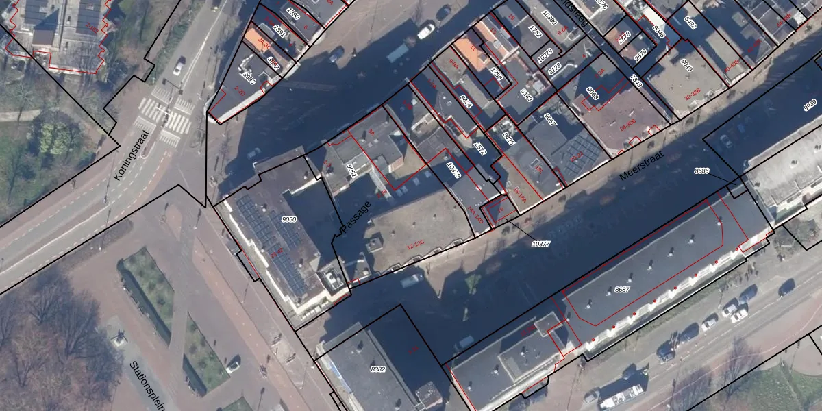 Het perceel waarop Passage 12 staat heeft een oppervlakte van 1034 m². Dit is een zeer groot perceel. De perceeloppervlakte wordt geregistreerd door het Kadaster. Gedetailleerde informatie over de maten van dit perceel kunt u vinden in het rapport Kadastrale kaart met maatvoering van Passage 12.