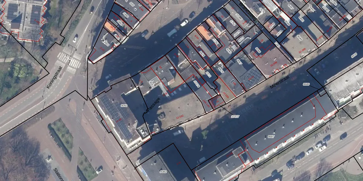 Het perceel waarop Passage 25 staat heeft een oppervlakte van 1034 m². Dit is een zeer groot perceel. De perceeloppervlakte wordt geregistreerd door het Kadaster. Gedetailleerde informatie over de maten van dit perceel kunt u vinden in het rapport Kadastrale kaart met maatvoering van Passage 25.