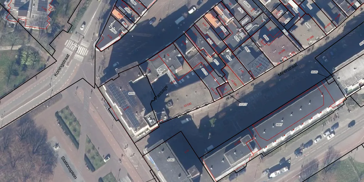 Het perceel waarop Passage 5 staat heeft een oppervlakte van 1034 m². Dit is een zeer groot perceel. De perceeloppervlakte wordt geregistreerd door het Kadaster. Gedetailleerde informatie over de maten van dit perceel kunt u vinden in het rapport Kadastrale kaart met maatvoering van Passage 5.
