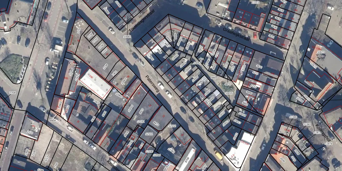 Het perceel waarop Patersweg 23 staat heeft een oppervlakte van 105 m². Dit is een middelgroot perceel. De perceeloppervlakte wordt geregistreerd door het Kadaster. Gedetailleerde informatie over de maten van dit perceel kunt u vinden in het rapport Kadastrale kaart met maatvoering van Patersweg 23.