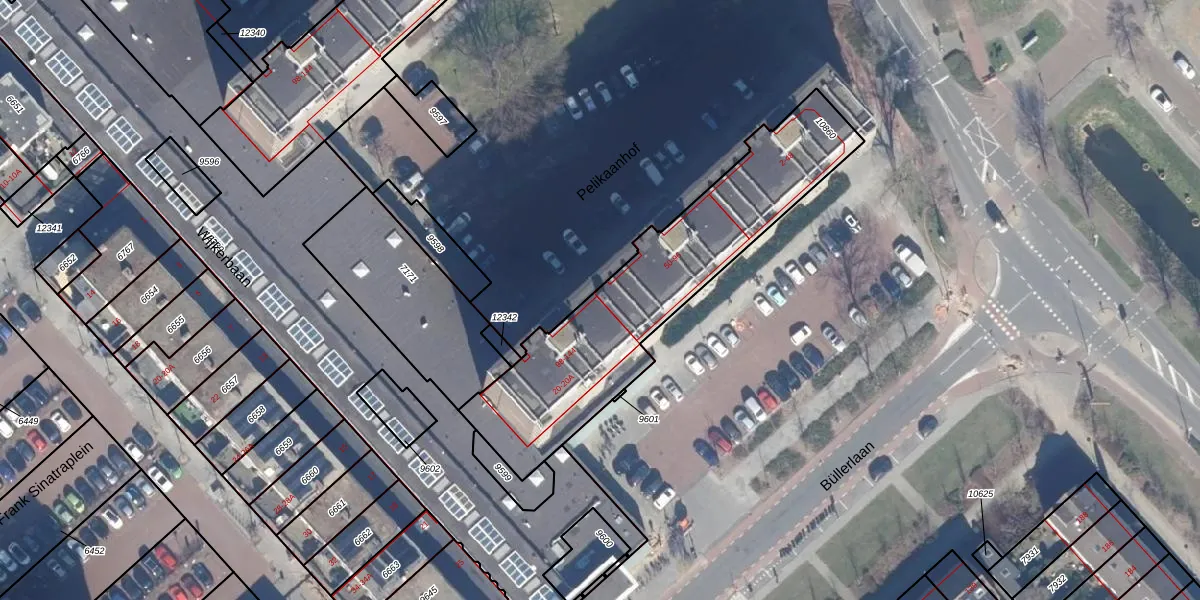 Het perceel waarop Pelikaanhof 106 staat heeft een oppervlakte van 1076 m². Dit is een zeer groot perceel. De perceeloppervlakte wordt geregistreerd door het Kadaster. Gedetailleerde informatie over de maten van dit perceel kunt u vinden in het rapport Kadastrale kaart met maatvoering van Pelikaanhof 106.