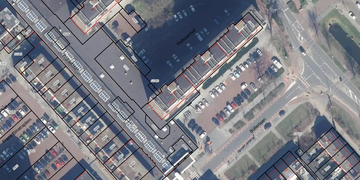 Het perceel waarop Pelikaanhof 132 staat heeft een oppervlakte van 1076 m². Dit is een zeer groot perceel. De perceeloppervlakte wordt geregistreerd door het Kadaster. Gedetailleerde informatie over de maten van dit perceel kunt u vinden in het rapport Kadastrale kaart met maatvoering van Pelikaanhof 132.