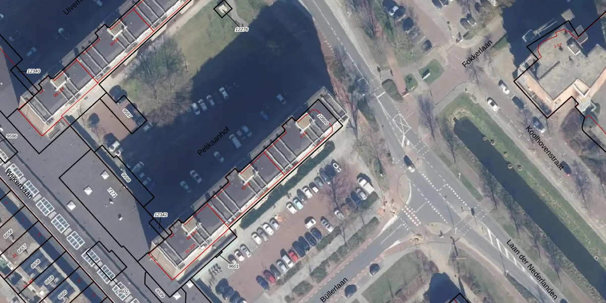 Het perceel waarop Pelikaanhof 44 staat heeft een oppervlakte van 1076 m². Dit is een zeer groot perceel. De perceeloppervlakte wordt geregistreerd door het Kadaster. Gedetailleerde informatie over de maten van dit perceel kunt u vinden in het rapport Kadastrale kaart met maatvoering van Pelikaanhof 44.