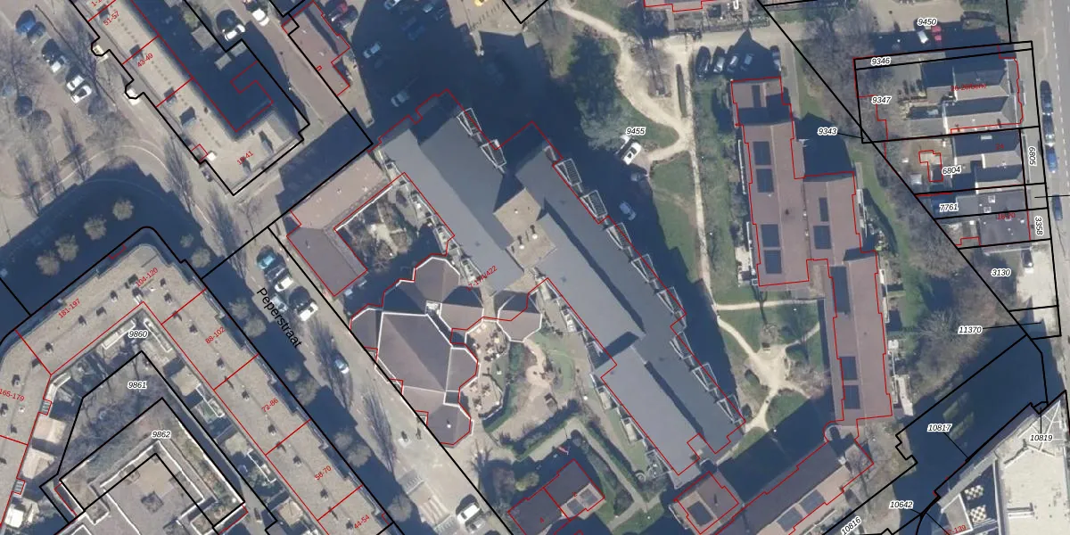 Het perceel waarop Peperstraat 17-A-322 staat heeft een oppervlakte van 1,2 ha. Dit is een zeer groot perceel. De perceeloppervlakte wordt geregistreerd door het Kadaster. Gedetailleerde informatie over de maten van dit perceel kunt u vinden in het rapport Kadastrale kaart met maatvoering van Peperstraat 17-A-322.