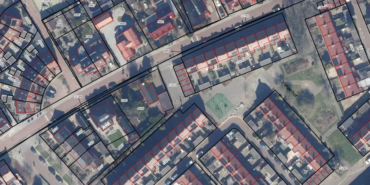 Het perceel waarop Pilotenweg 23 staat heeft een oppervlakte van 106 m². Dit is een middelgroot perceel. De perceeloppervlakte wordt geregistreerd door het Kadaster. Gedetailleerde informatie over de maten van dit perceel kunt u vinden in het rapport Kadastrale kaart met maatvoering van Pilotenweg 23.