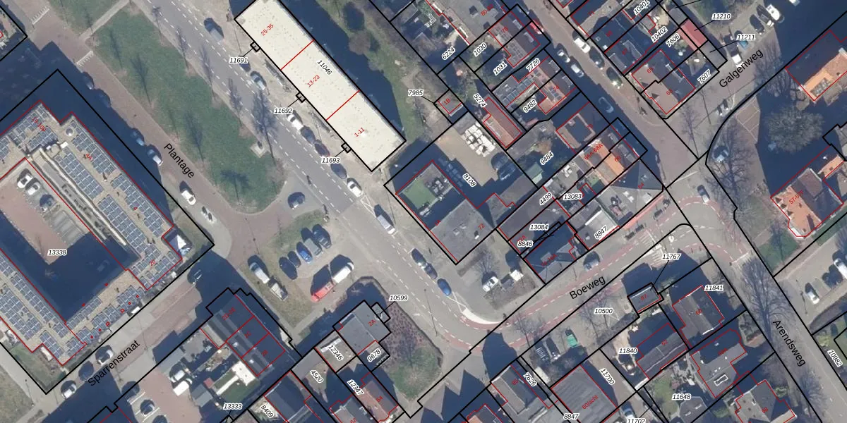 Het perceel waarop Plantage 1-A staat heeft een oppervlakte van 663 m². Dit is een groot perceel. De perceeloppervlakte wordt geregistreerd door het Kadaster. Gedetailleerde informatie over de maten van dit perceel kunt u vinden in het rapport Kadastrale kaart met maatvoering van Plantage 1-A.