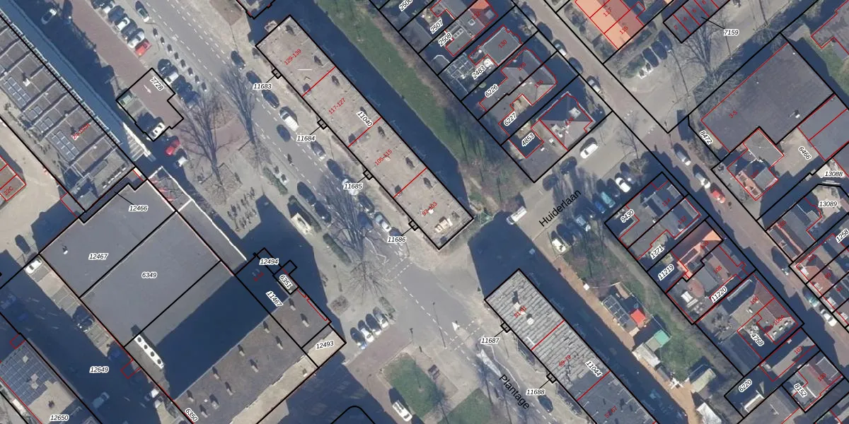 Het perceel waarop Plantage 101 staat heeft een oppervlakte van 719 m². Dit is een groot perceel. De perceeloppervlakte wordt geregistreerd door het Kadaster. Gedetailleerde informatie over de maten van dit perceel kunt u vinden in het rapport Kadastrale kaart met maatvoering van Plantage 101.