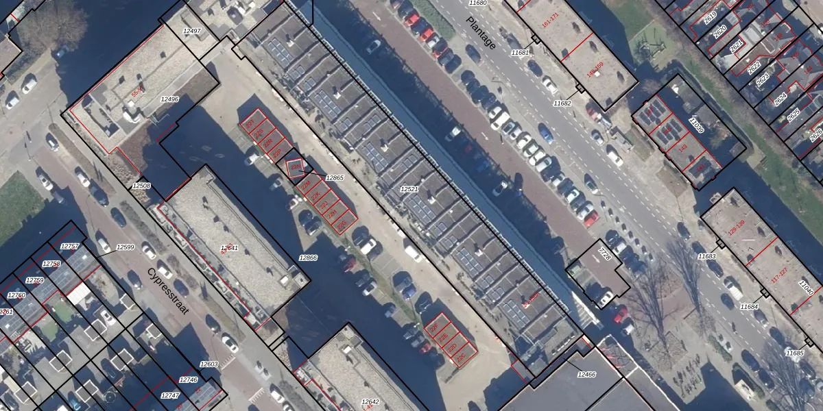 Het perceel waarop Plantage 108 staat heeft een oppervlakte van 1749 m². Dit is een zeer groot perceel. De perceeloppervlakte wordt geregistreerd door het Kadaster. Gedetailleerde informatie over de maten van dit perceel kunt u vinden in het rapport Kadastrale kaart met maatvoering van Plantage 108.