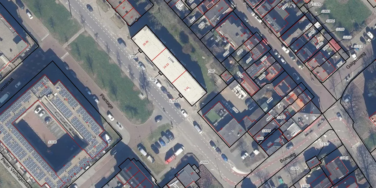 Het perceel waarop Plantage 11 staat heeft een oppervlakte van 541 m². Dit is een groot perceel. De perceeloppervlakte wordt geregistreerd door het Kadaster. Gedetailleerde informatie over de maten van dit perceel kunt u vinden in het rapport Kadastrale kaart met maatvoering van Plantage 11.