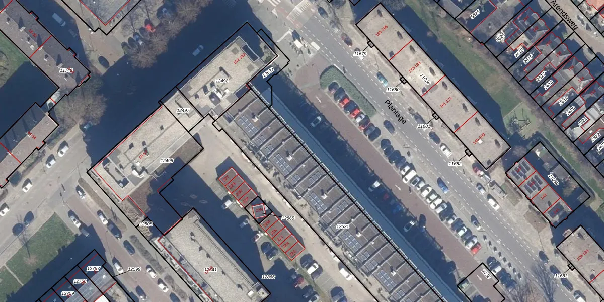 Het perceel waarop Plantage 144 staat heeft een oppervlakte van 1749 m². Dit is een zeer groot perceel. De perceeloppervlakte wordt geregistreerd door het Kadaster. Gedetailleerde informatie over de maten van dit perceel kunt u vinden in het rapport Kadastrale kaart met maatvoering van Plantage 144.