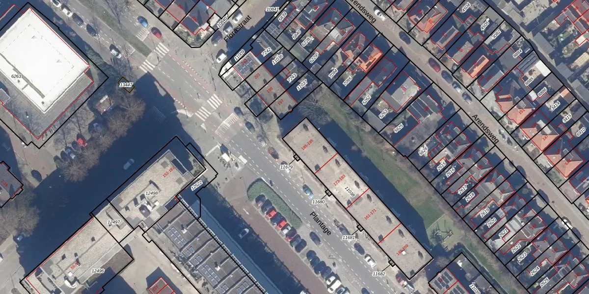Het perceel waarop Plantage 185 staat heeft een oppervlakte van 719 m². Dit is een groot perceel. De perceeloppervlakte wordt geregistreerd door het Kadaster. Gedetailleerde informatie over de maten van dit perceel kunt u vinden in het rapport Kadastrale kaart met maatvoering van Plantage 185.