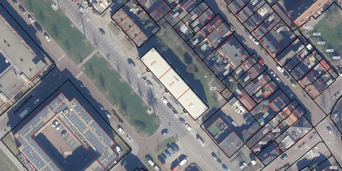 Het perceel waarop Plantage 21 staat heeft een oppervlakte van 541 m². Dit is een groot perceel. De perceeloppervlakte wordt geregistreerd door het Kadaster. Gedetailleerde informatie over de maten van dit perceel kunt u vinden in het rapport Kadastrale kaart met maatvoering van Plantage 21.