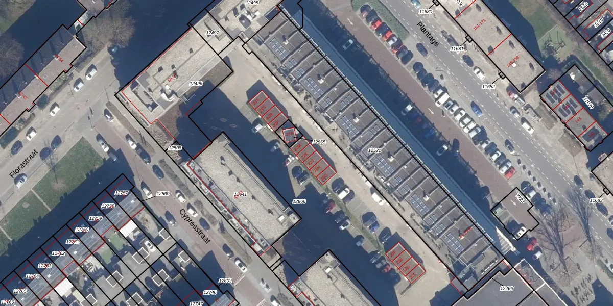 Het perceel waarop Plantage 22-K staat heeft een oppervlakte van 2888 m². Dit is een zeer groot perceel. De perceeloppervlakte wordt geregistreerd door het Kadaster. Gedetailleerde informatie over de maten van dit perceel kunt u vinden in het rapport Kadastrale kaart met maatvoering van Plantage 22-K.