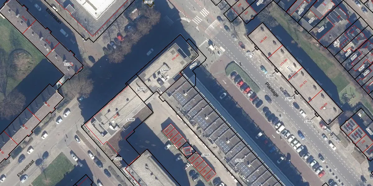 Het perceel waarop Plantage 24 staat heeft een oppervlakte van 1749 m². Dit is een zeer groot perceel. De perceeloppervlakte wordt geregistreerd door het Kadaster. Gedetailleerde informatie over de maten van dit perceel kunt u vinden in het rapport Kadastrale kaart met maatvoering van Plantage 24.