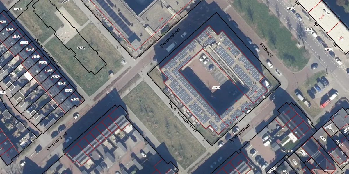 Het perceel waarop Plantage 4 staat heeft een oppervlakte van 2945 m². Dit is een zeer groot perceel. De perceeloppervlakte wordt geregistreerd door het Kadaster. Gedetailleerde informatie over de maten van dit perceel kunt u vinden in het rapport Kadastrale kaart met maatvoering van Plantage 4.