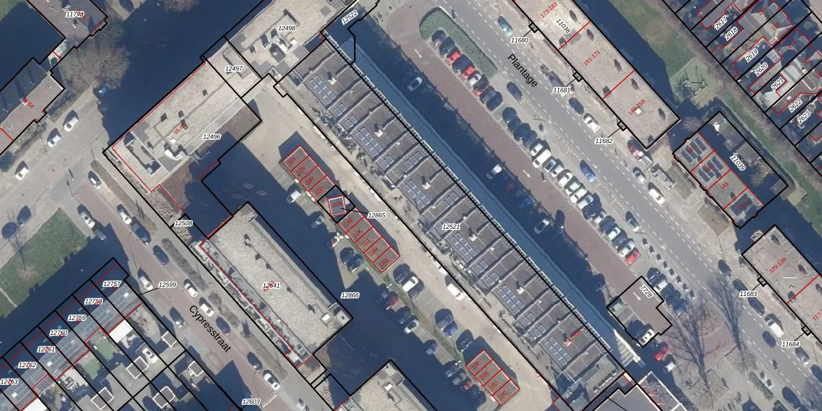 Het perceel waarop Plantage 56 staat heeft een oppervlakte van 1749 m². Dit is een zeer groot perceel. De perceeloppervlakte wordt geregistreerd door het Kadaster. Gedetailleerde informatie over de maten van dit perceel kunt u vinden in het rapport Kadastrale kaart met maatvoering van Plantage 56.