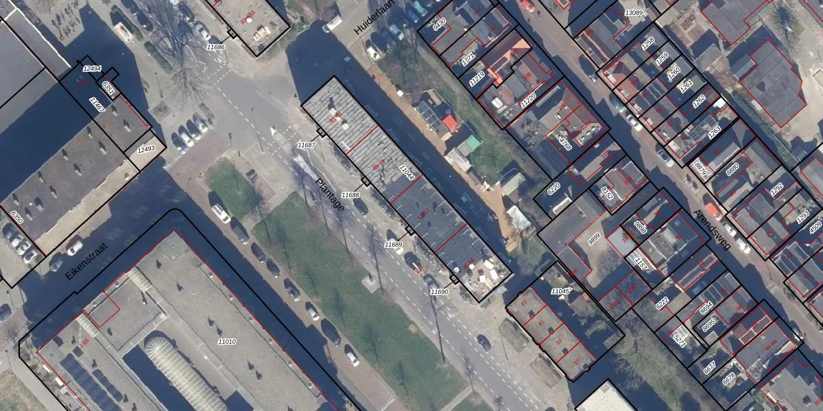 Het perceel waarop Plantage 63 staat heeft een oppervlakte van 719 m². Dit is een groot perceel. De perceeloppervlakte wordt geregistreerd door het Kadaster. Gedetailleerde informatie over de maten van dit perceel kunt u vinden in het rapport Kadastrale kaart met maatvoering van Plantage 63.