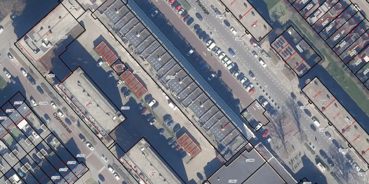 Het perceel waarop Plantage 74 staat heeft een oppervlakte van 1749 m². Dit is een zeer groot perceel. De perceeloppervlakte wordt geregistreerd door het Kadaster. Gedetailleerde informatie over de maten van dit perceel kunt u vinden in het rapport Kadastrale kaart met maatvoering van Plantage 74.