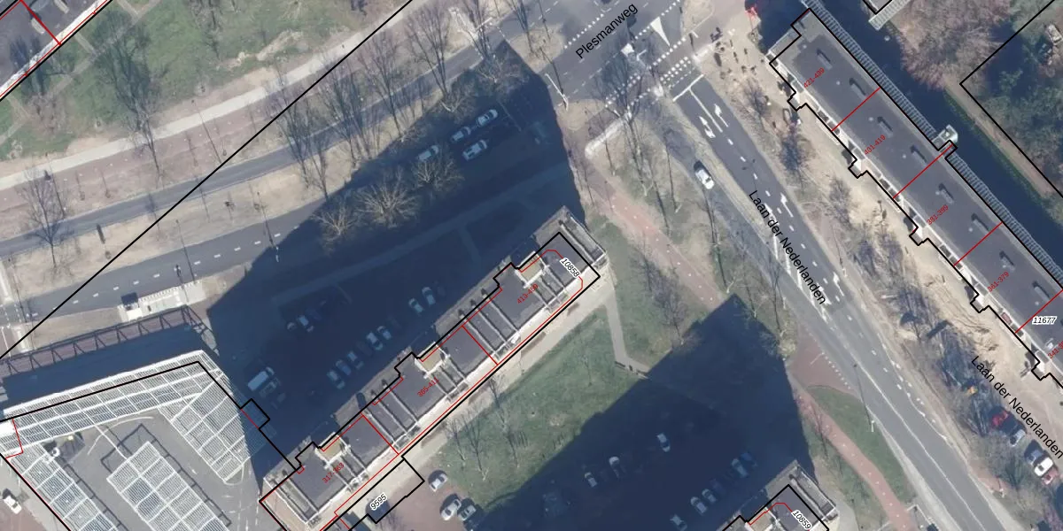 Het perceel waarop Plesmanweg 415 staat heeft een oppervlakte van 919 m². Dit is een groot perceel. De perceeloppervlakte wordt geregistreerd door het Kadaster. Gedetailleerde informatie over de maten van dit perceel kunt u vinden in het rapport Kadastrale kaart met maatvoering van Plesmanweg 415.