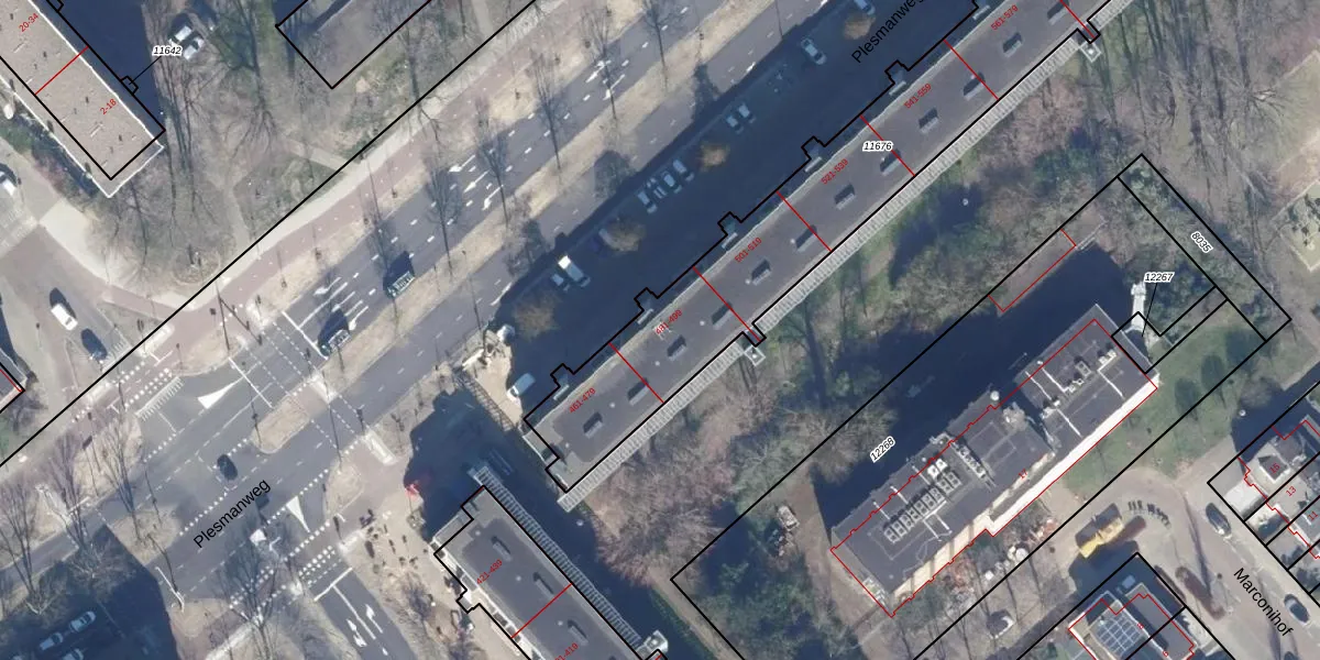 Het perceel waarop Plesmanweg 493 staat heeft een oppervlakte van 1805 m². Dit is een zeer groot perceel. De perceeloppervlakte wordt geregistreerd door het Kadaster. Gedetailleerde informatie over de maten van dit perceel kunt u vinden in het rapport Kadastrale kaart met maatvoering van Plesmanweg 493.