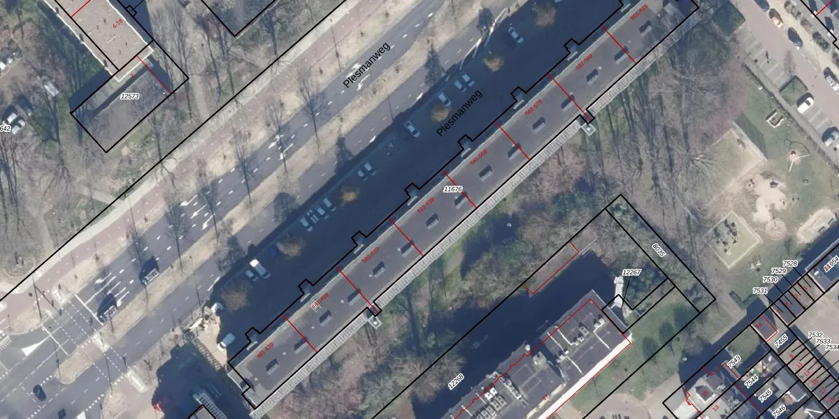 Het perceel waarop Plesmanweg 533 staat heeft een oppervlakte van 1805 m². Dit is een zeer groot perceel. De perceeloppervlakte wordt geregistreerd door het Kadaster. Gedetailleerde informatie over de maten van dit perceel kunt u vinden in het rapport Kadastrale kaart met maatvoering van Plesmanweg 533.