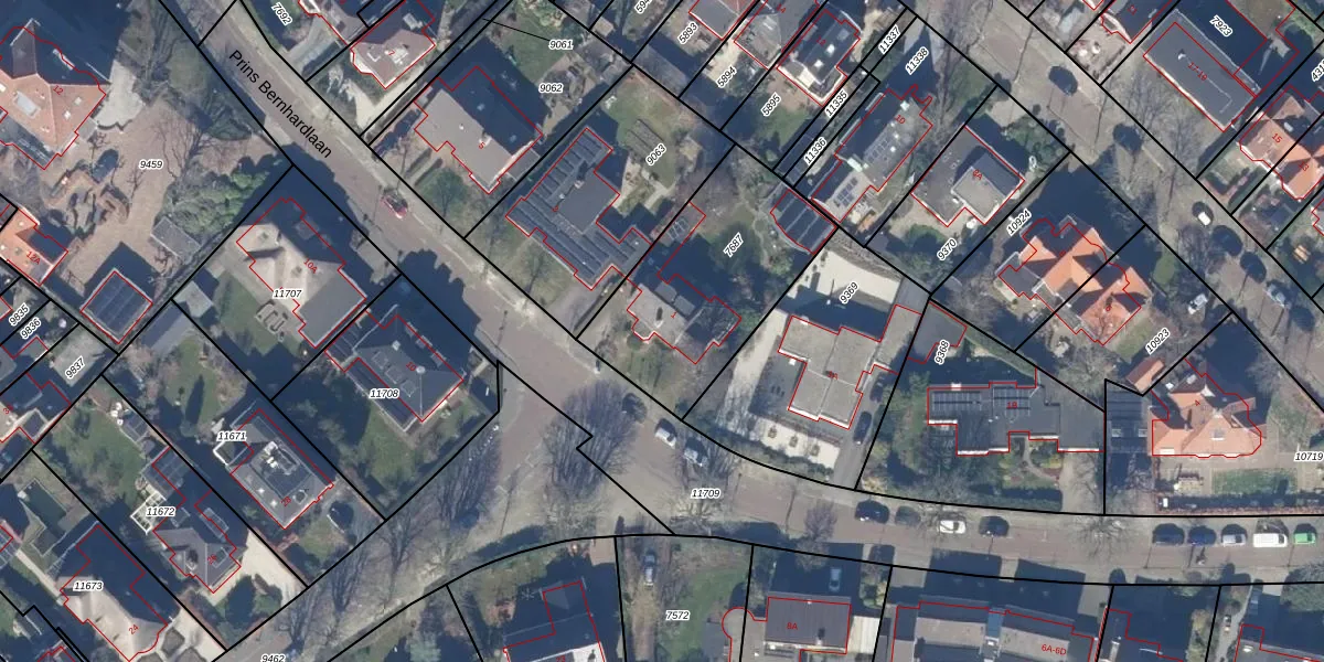 Het perceel waarop Prins Bernhardlaan 1 staat heeft een oppervlakte van 767 m². Dit is een groot perceel. De perceeloppervlakte wordt geregistreerd door het Kadaster. Gedetailleerde informatie over de maten van dit perceel kunt u vinden in het rapport Kadastrale kaart met maatvoering van Prins Bernhardlaan 1.